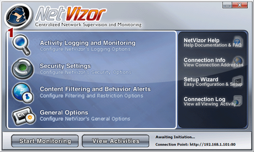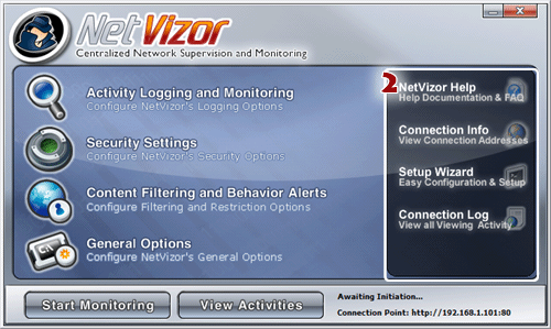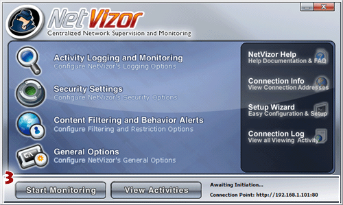 the 'Start Monitoring' button. If you have NetVizor set to run