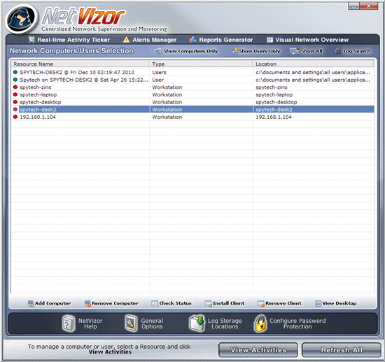 NetVizor's monitoring. Clicking on "View Activities" while NetVizor