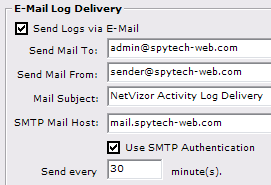 A: No - NetVizor uses its own built in emailer - all logs are sent