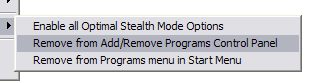 The Stealth Actions menu, located under the PROGRAM OPTIONS menu on